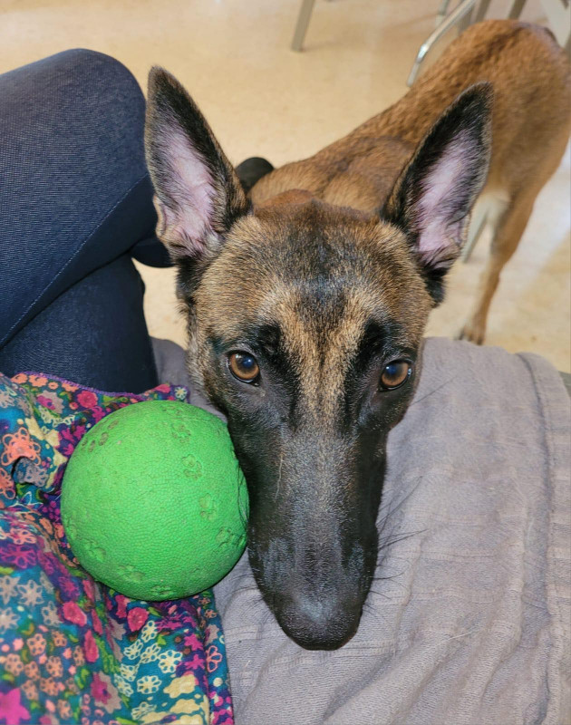 "Petite taille, chienne Malinoise +- 18kg , vaccinée , pucée , stérilisée ! Elle est âgée de 2 ans 1/2.