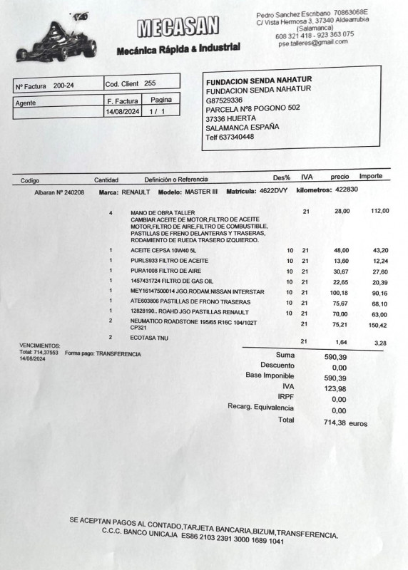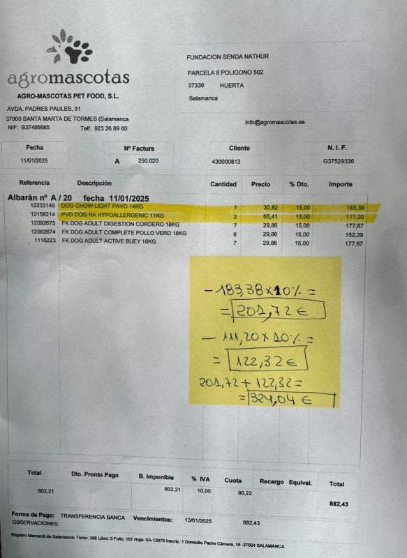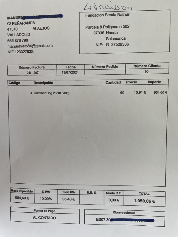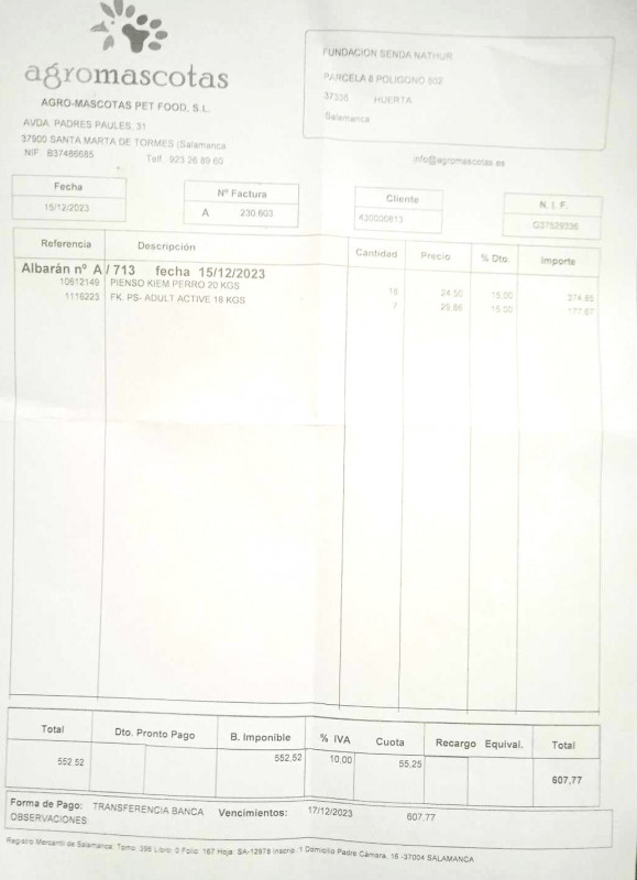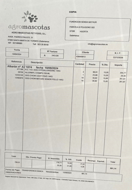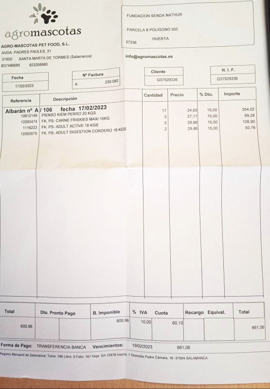 Le 17 juin 2023, nous avons fait un virement de 1000 € au refuge de Ana (Senda Nathur) pour l'achat de nourriture selon les besoins.