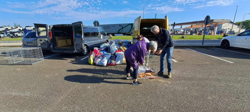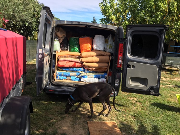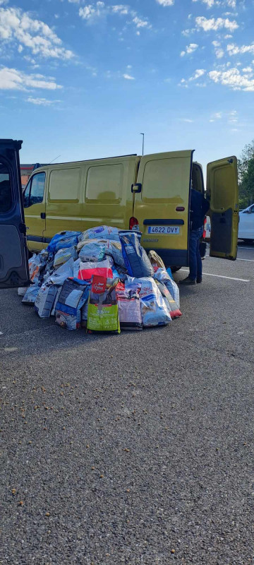 Pour le retour, nous avons donné 800 kgs de nourriture pour deux de nos refuges partenaires de Salamanca, ainsi que des couvertures et divers matériel.