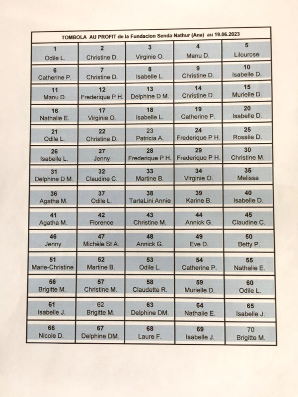 Nous émettons 70 coupons d’une valeur de 10.00 € chacun ; chaque coupon numéroté de 1 à 70 à votre nom sera déposé dans un chapeau (avec le ou les numéros choisis et le nom du donateur) dans l’attente du tirage au sort.