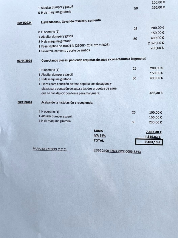 Le 29.12.2023, virement du 5ème acompte (3000 €) pour les travaux :