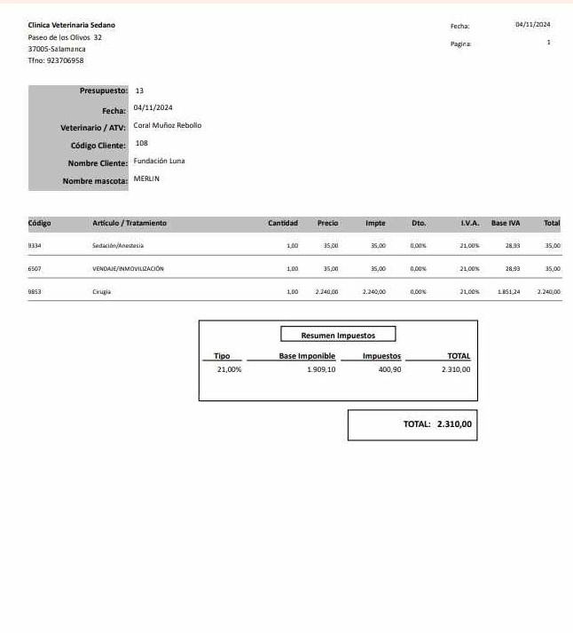 Le 04.04.2023, LMA a pu faire un virement de 1000 euros à Ana (refuge Senda Nathur) en participation des frais vétérinaire pour l'intervention chirurgicale de la hanche de l'adorable mastin PULPO.