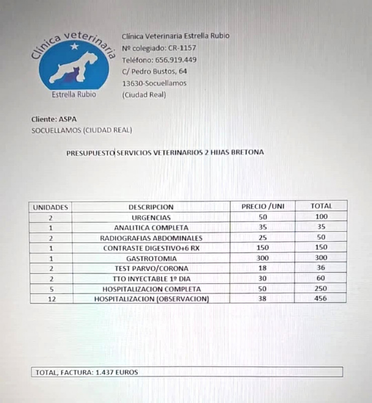 LMA a fait un virement de 300 Euros pour aider Véronica (A.S.P.A refuge à Socuellamos) suite à beaucoup de frais vétérinaire.