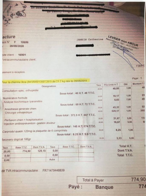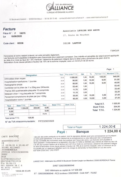 28.08.2020 Facture chirurgie (amputation) 774.90 €