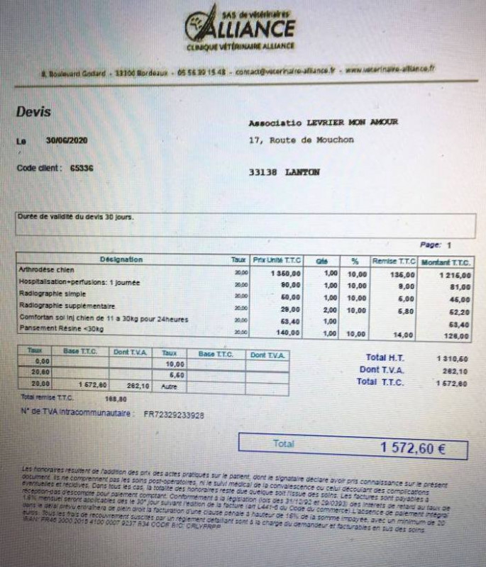 Total Frais Vétérinaires : 2008.90 €