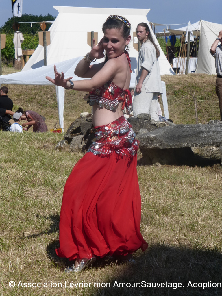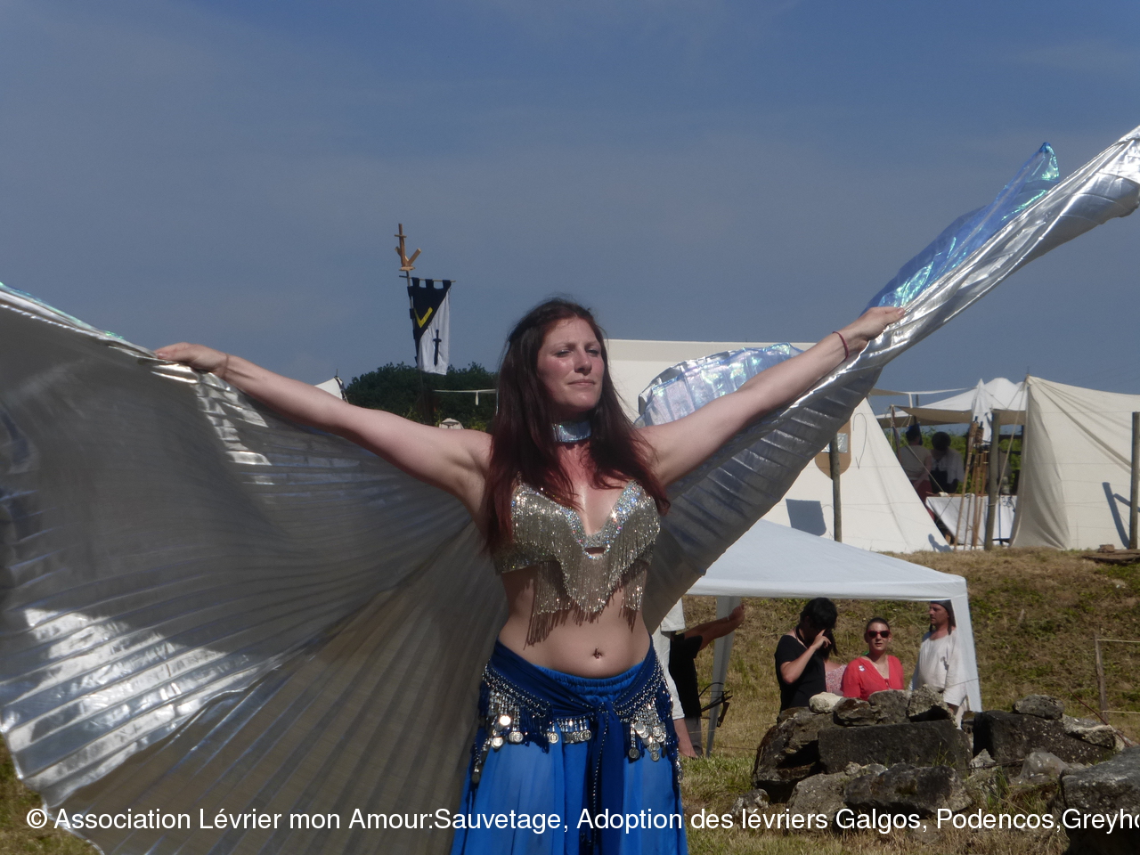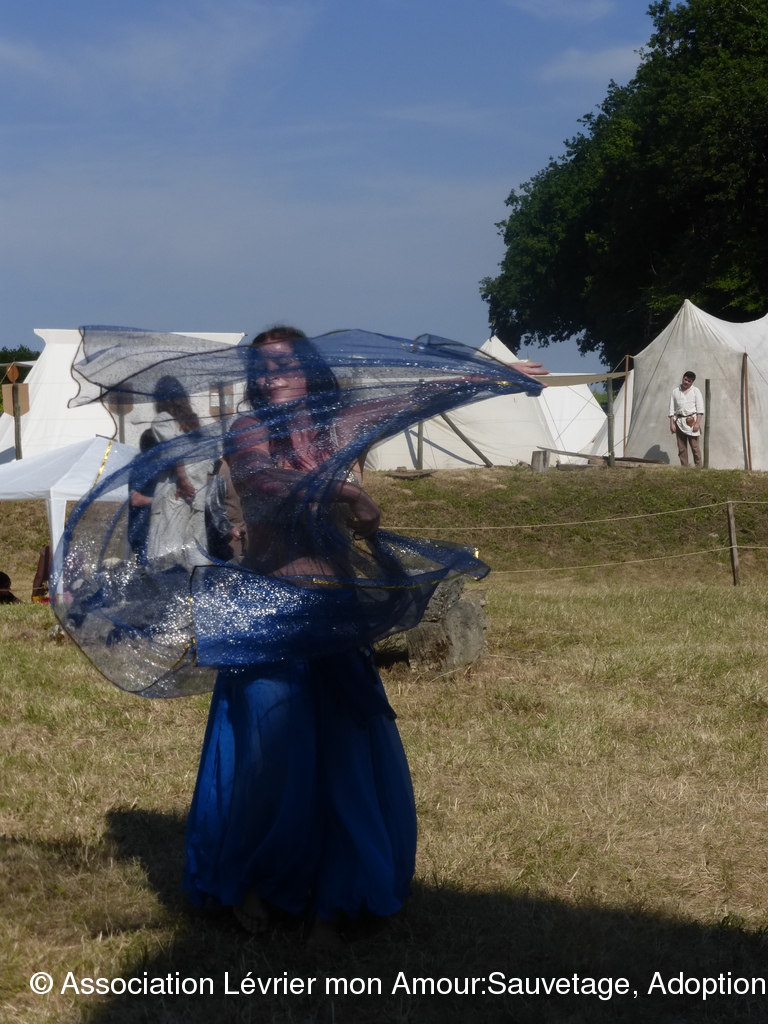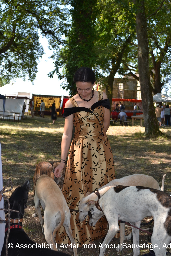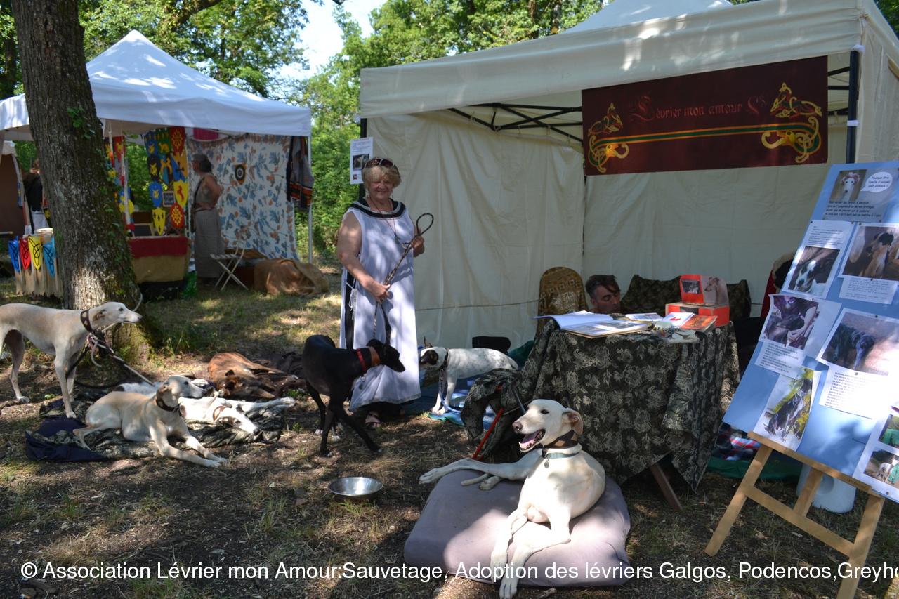 MESSIRES ANDRÉ ET THIERRY AVEC DAME CHRISTIANE ASSURAIENT COURAGEUSEMENT L'INTENDANCE PENDANT QUE NOTRE PAGE MARIE ET DAME MICHELE ESSAYAIENT DE RÉPONDRE AUX NOMBREUSES QUESTIONS QUE LES BADAUDS POSAIENT AU SUJET DES NOBLES GALGOS;MAIS TOUTE L'ÉQUIPE VEILLAIT AU CONFORT DE SES SEIGNEURS CHERCHANT OMBRES ET EAUX COMME D'HABITUDE, NOS GRACIEUX LOULOUS FIRENT L'ADMIRATION DES PETITS ET DES GRANDS ET EURENT LEUR HEURE DE GLOIRE ET POURTANT LES SPECTACLES NE MANQUAIENT PAS : GRACIEUSE DANSEUSES ORIENTALES RAMENEES SANS DOUTE PAR LES PREUX CHEVALIERS QUI COMBATTIRENT AVEC COURAGE DANS LA FOURNAISE QUI DEVAIT LEUR RAPPELER D'AUTRES COMBATS AUX PORTES DU DÉSERT;FAUCONNIER ET SES GRANDS DUCS ;TIREURS A L'ARC ET ARBALÈTE SANS OUBLIER LE COCHER ET SON COURAGEUX CHEVAL QUI PROMENAIENT TOUT CE MONDE DANS LES VIGNES DE LOUPIAC.