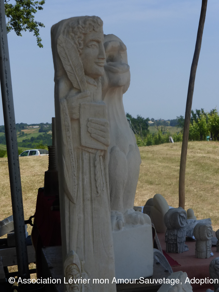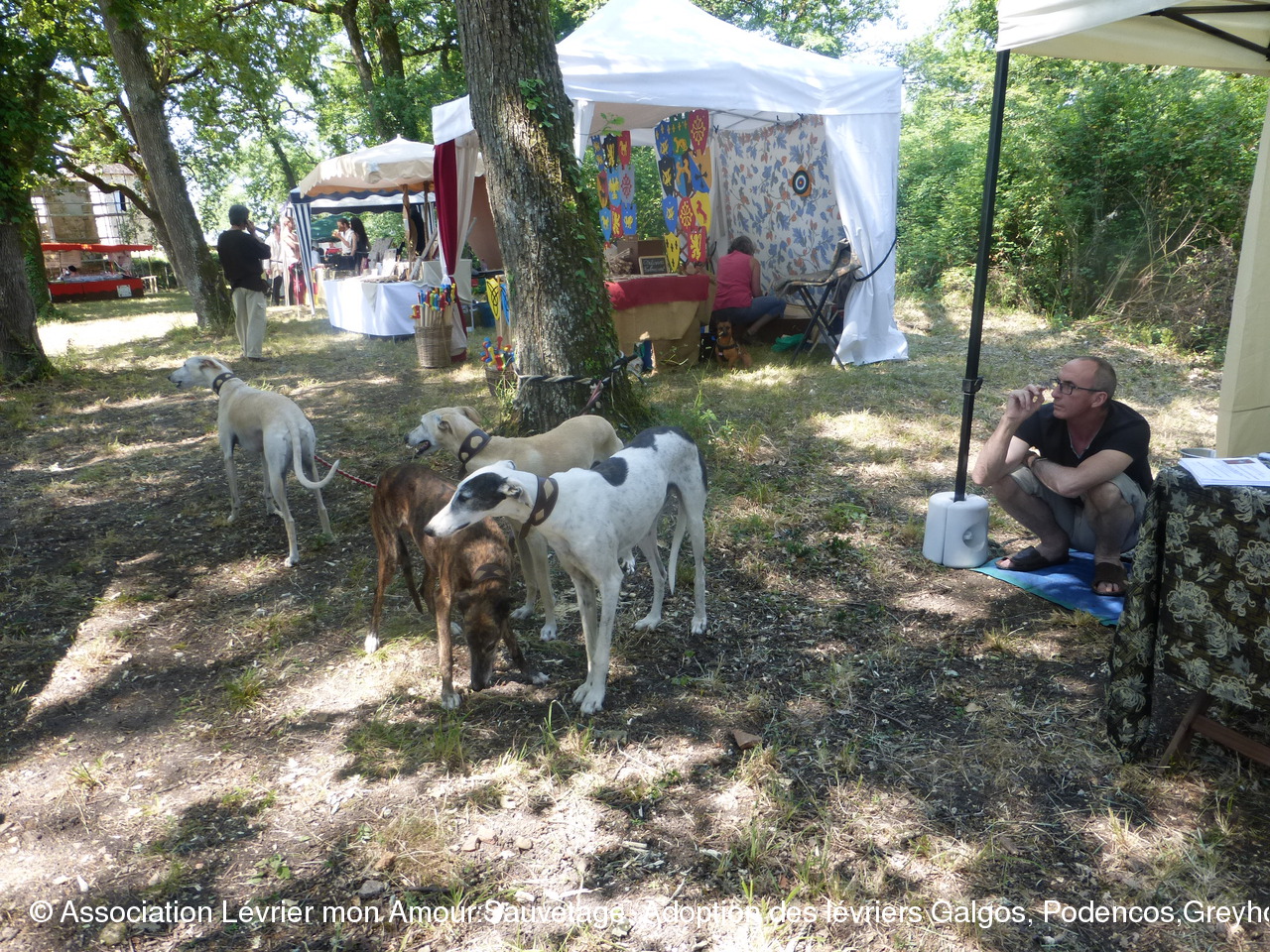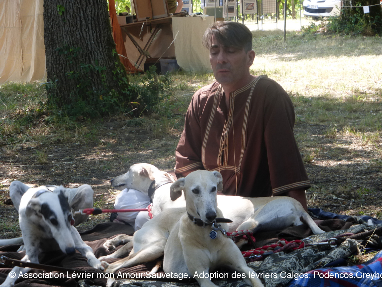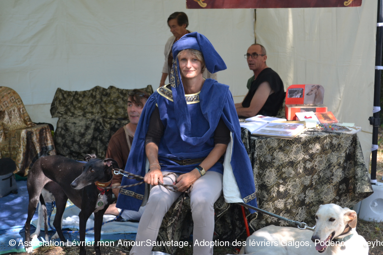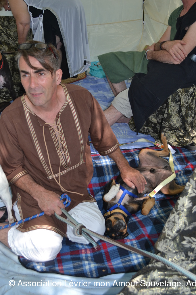 MESSIRES ANDRÉ ET THIERRY AVEC DAME CHRISTIANE ASSURAIENT COURAGEUSEMENT L'INTENDANCE PENDANT QUE NOTRE PAGE MARIE ET DAME MICHELE ESSAYAIENT DE RÉPONDRE AUX NOMBREUSES QUESTIONS QUE LES BADAUDS POSAIENT AU SUJET DES NOBLES GALGOS;MAIS TOUTE L'ÉQUIPE VEILLAIT AU CONFORT DE SES SEIGNEURS CHERCHANT OMBRES ET EAUX COMME D'HABITUDE, NOS GRACIEUX LOULOUS FIRENT L'ADMIRATION DES PETITS ET DES GRANDS ET EURENT LEUR HEURE DE GLOIRE ET POURTANT LES SPECTACLES NE MANQUAIENT PAS : GRACIEUSE DANSEUSES ORIENTALES RAMENEES SANS DOUTE PAR LES PREUX CHEVALIERS QUI COMBATTIRENT AVEC COURAGE DANS LA FOURNAISE QUI DEVAIT LEUR RAPPELER D'AUTRES COMBATS AUX PORTES DU DÉSERT;FAUCONNIER ET SES GRANDS DUCS ;TIREURS A L'ARC ET ARBALÈTE SANS OUBLIER LE COCHER ET SON COURAGEUX CHEVAL QUI PROMENAIENT TOUT CE MONDE DANS LES VIGNES DE LOUPIAC.