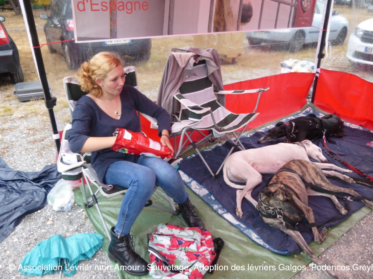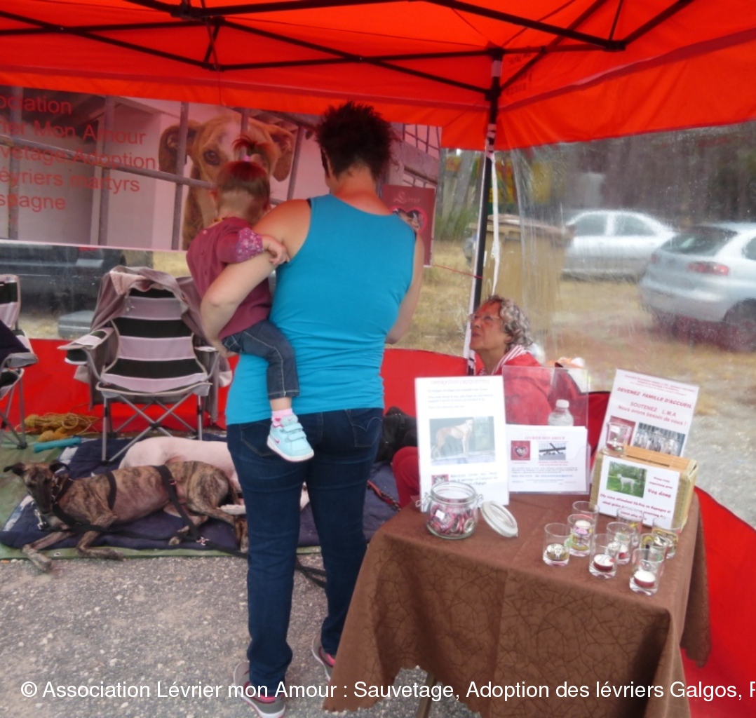 La pluie du matin ne nous a pas découragées et nous avons encore passé une belle et sympathique journée. Inlassablement nous avons expliqué ce qu’était l’enfer des galgos en Espagne à toutes les personnes qui passaient.