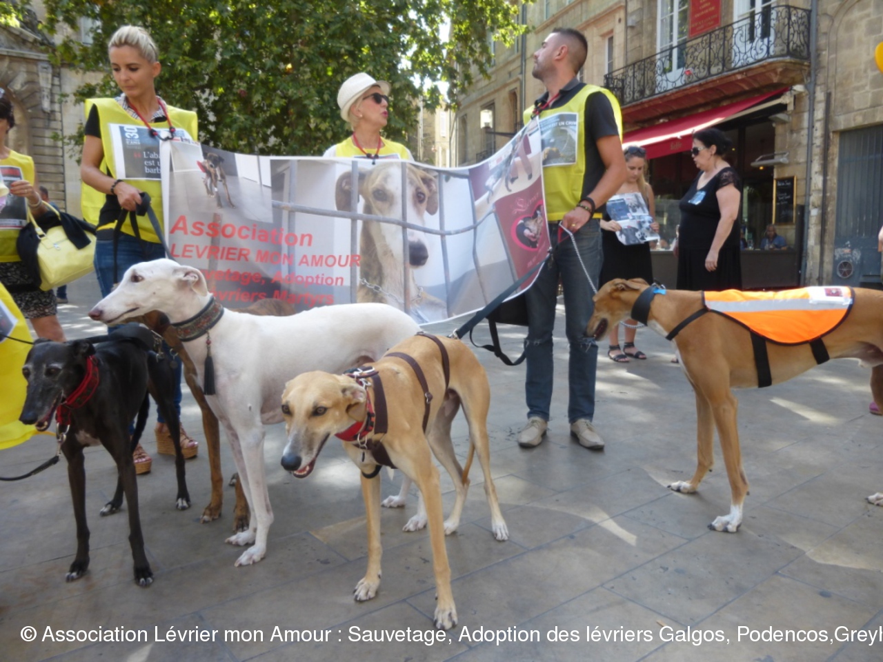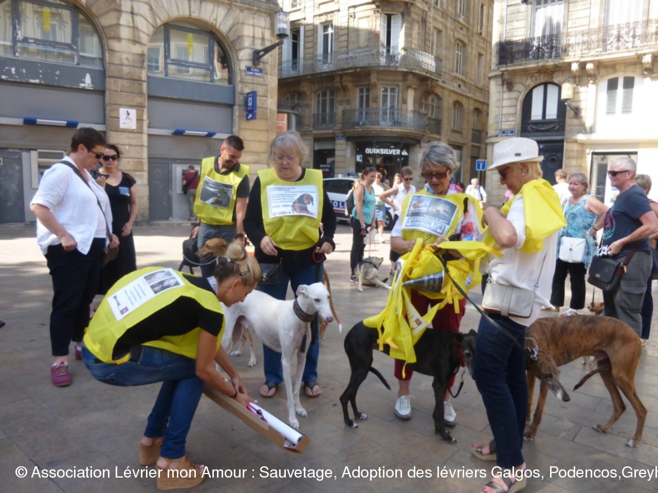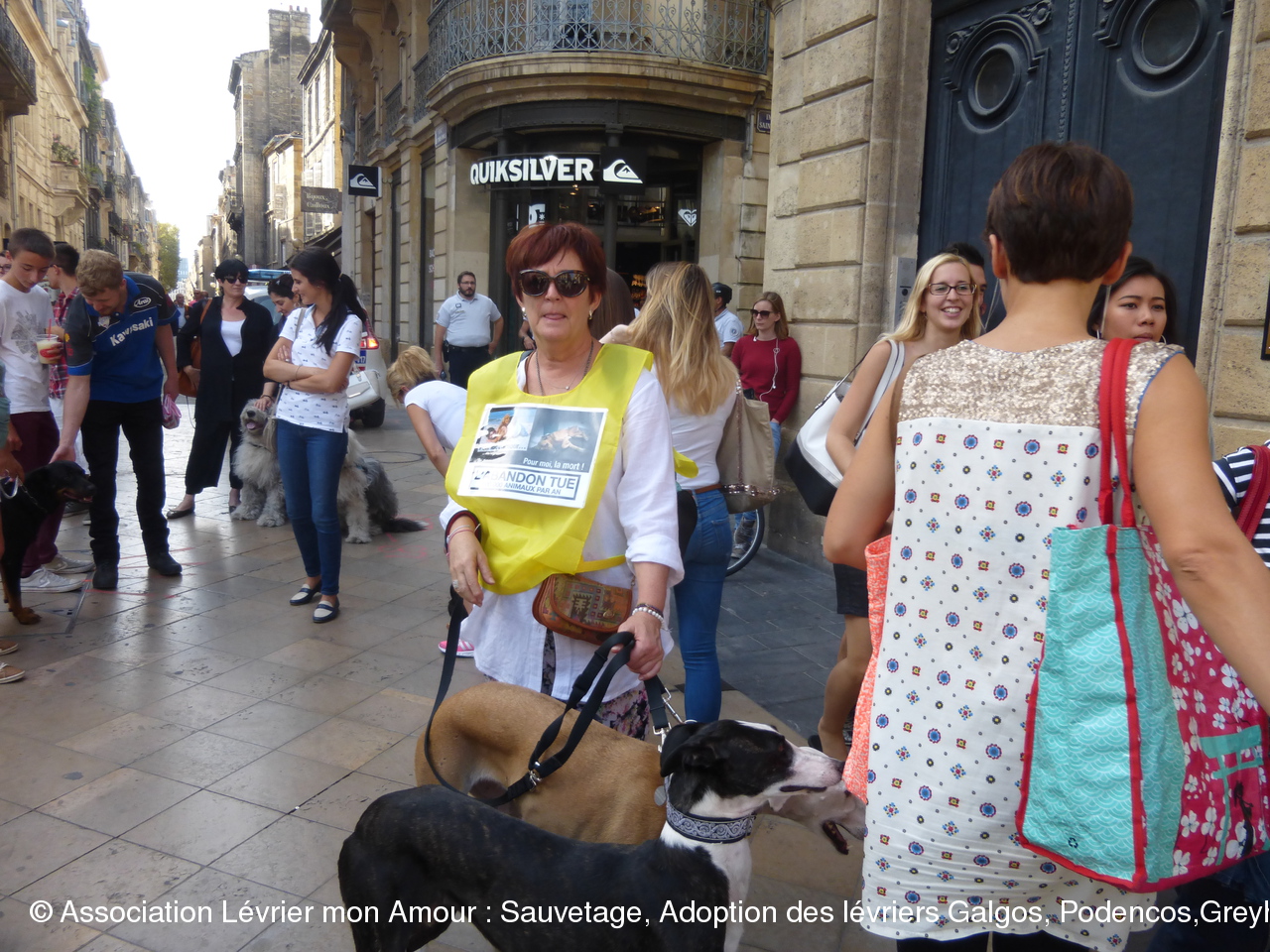 Le 24 Septembre 2016 à Bordeaux, Lévrier mon Amour a participé à la marche contre l’abandon organisée par l’association Venus. La SPA de Bordeaux (Antenne de la SPA nationale), 30 millions d’ Amis, le nouvel Esperanto des Lévrier et la fondation Brigitte Bardot était aussi présents ou représentés. Nadine n'a pas pu être présente car elle travaillait de nuit.