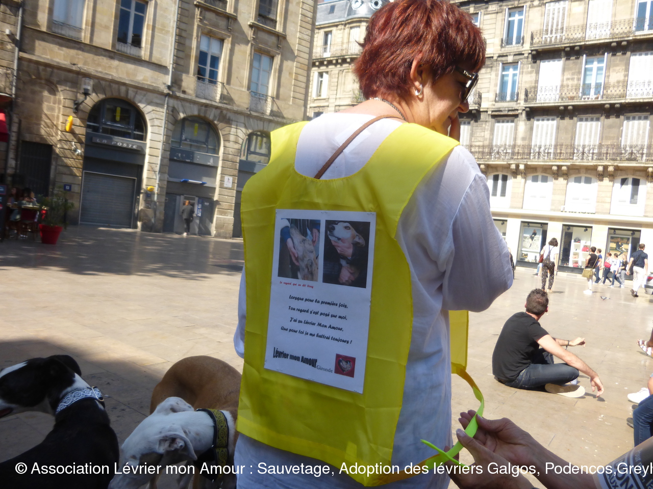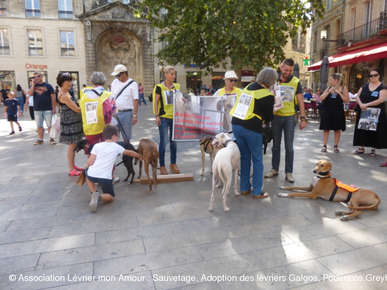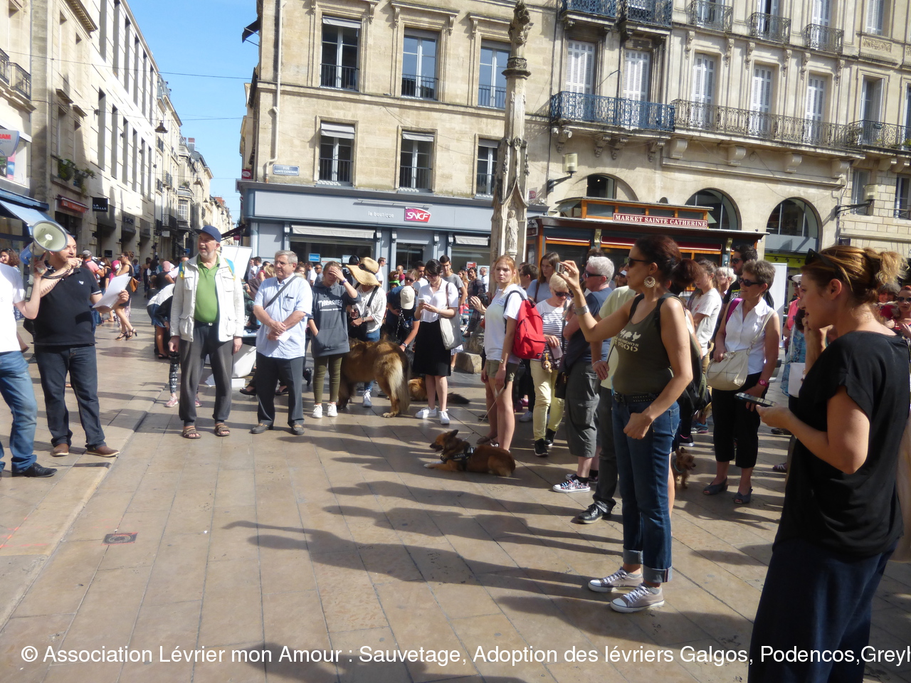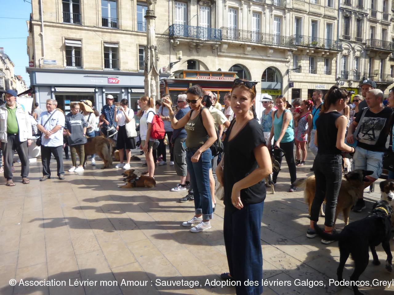Le 24 Septembre 2016 à Bordeaux, Lévrier mon Amour a participé à la marche contre l’abandon organisée par l’association Venus. La SPA de Bordeaux (Antenne de la SPA nationale), 30 millions d’ Amis, le nouvel Esperanto des Lévrier et la fondation Brigitte Bardot était aussi présents ou représentés. Nadine n'a pas pu être présente car elle travaillait de nuit.