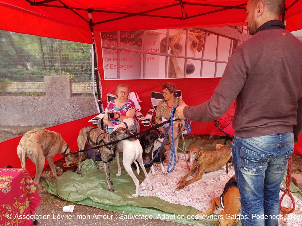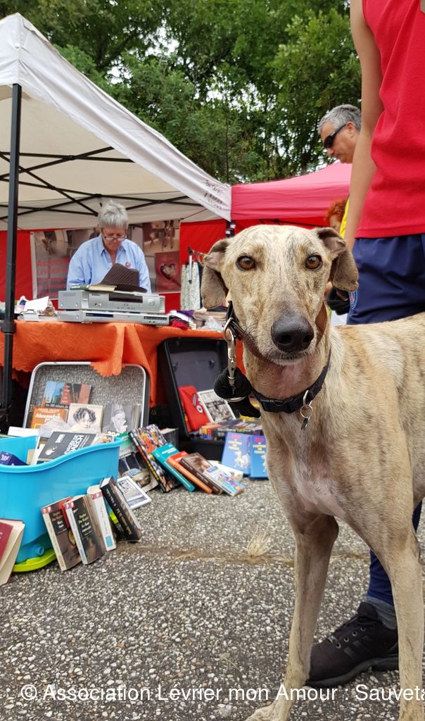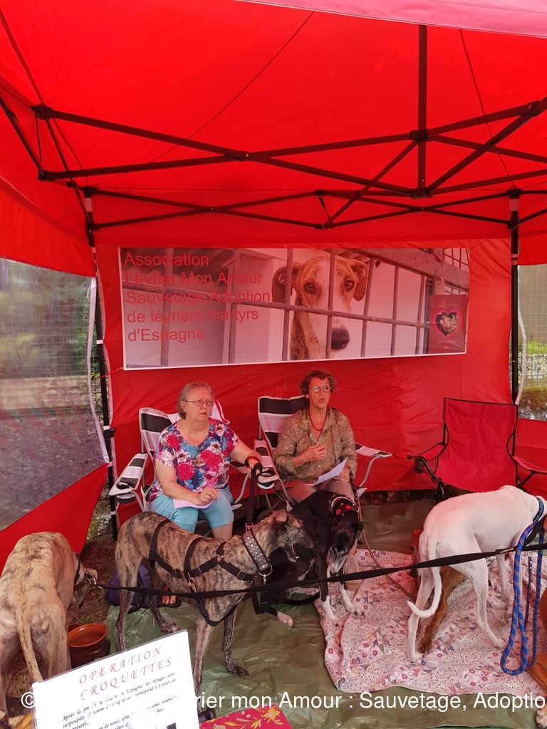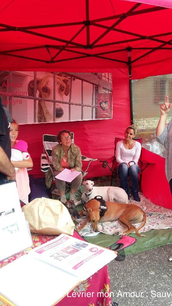 Notre groupe était composé de Martine, Catherine, Josselyne, Raphaëlle, Philippe, Maryline et Jean-Paul. Nous avons bien vendu et présenté à quelques personnes le problème de nos pauvres lévriers martyrs d'Espagne.