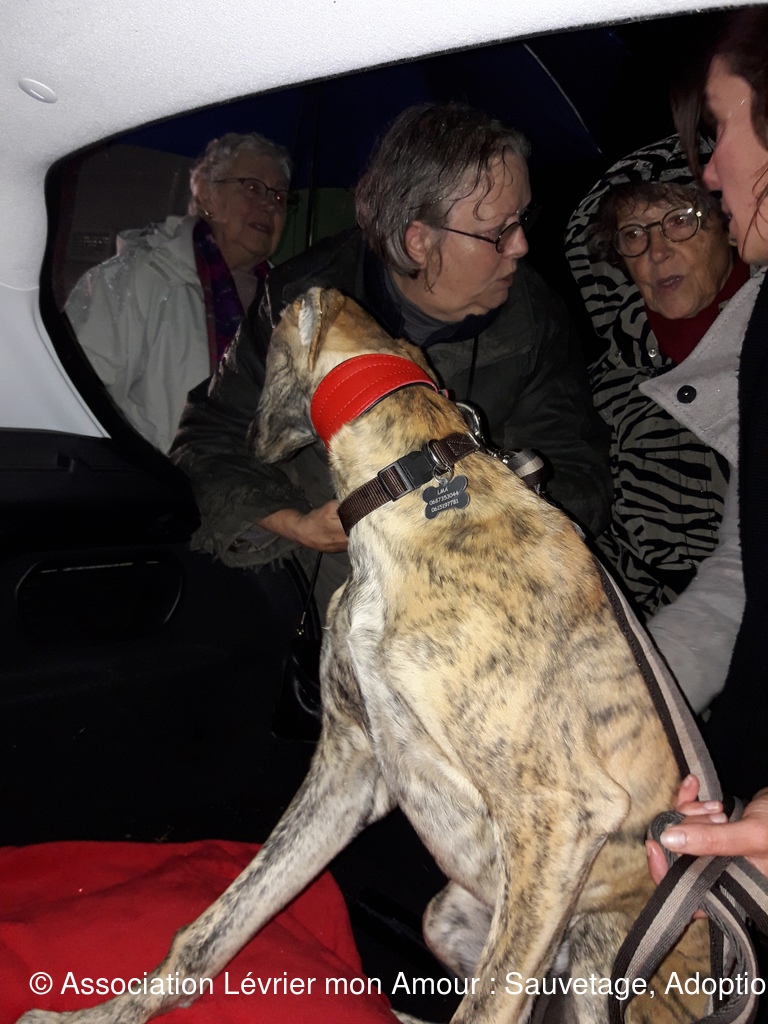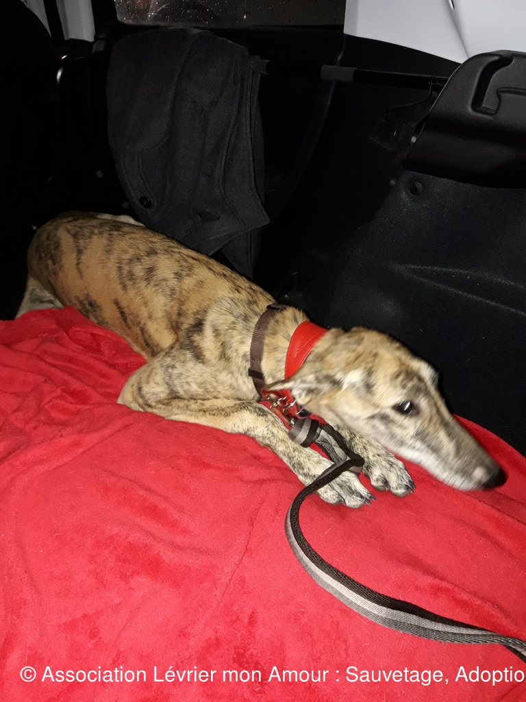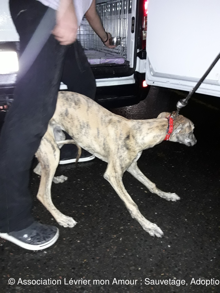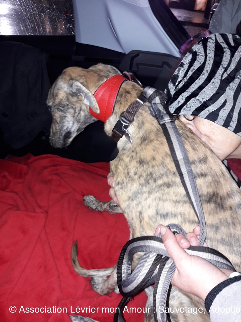 Les 3 loulous ne sont pas à l’aise entre le voyage et la pluie. BB Martine se demande vraiment ce qu’il se passe ; elle est adorable cette petite loute.  Nuberoja est lui aussi un grand et noble Galgo qui va s’ouvrir en quelques jours.