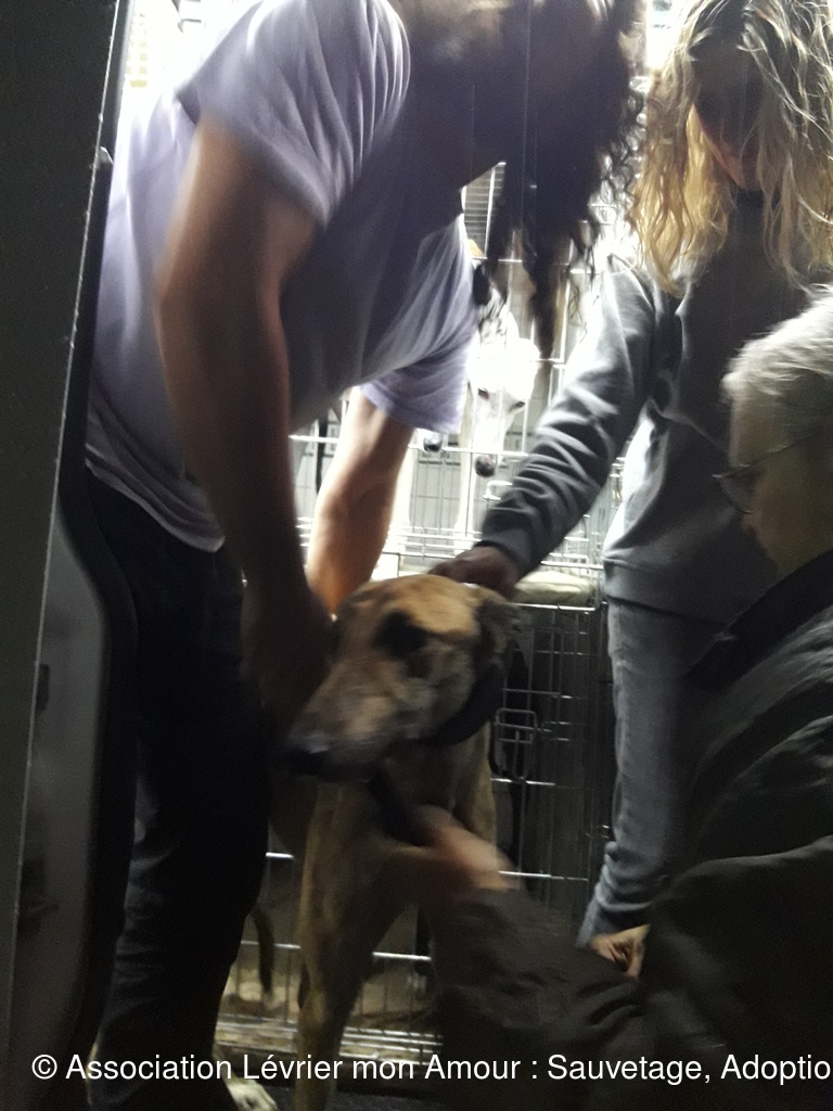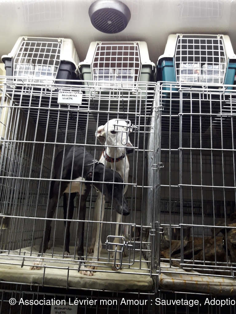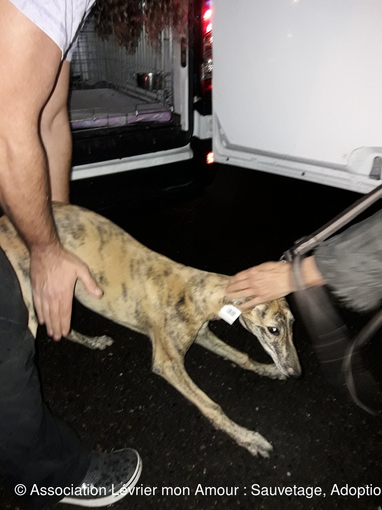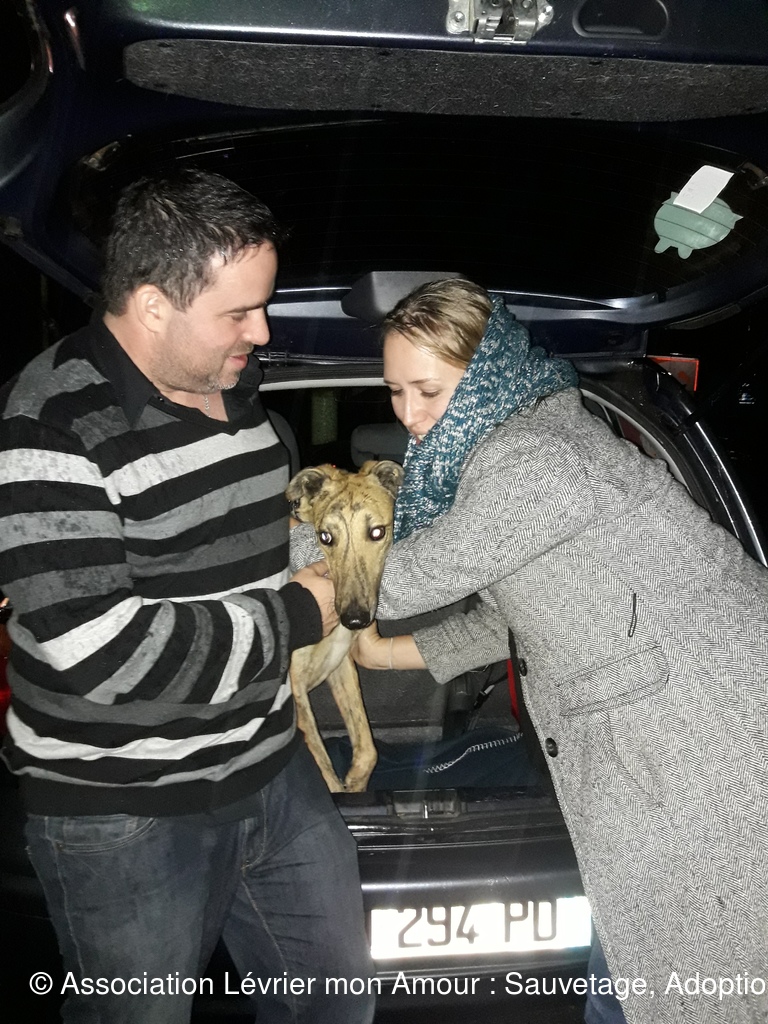 Les 3 loulous ne sont pas à l’aise entre le voyage et la pluie. BB Martine se demande vraiment ce qu’il se passe ; elle est adorable cette petite loute.  Nuberoja est lui aussi un grand et noble Galgo qui va s’ouvrir en quelques jours.
