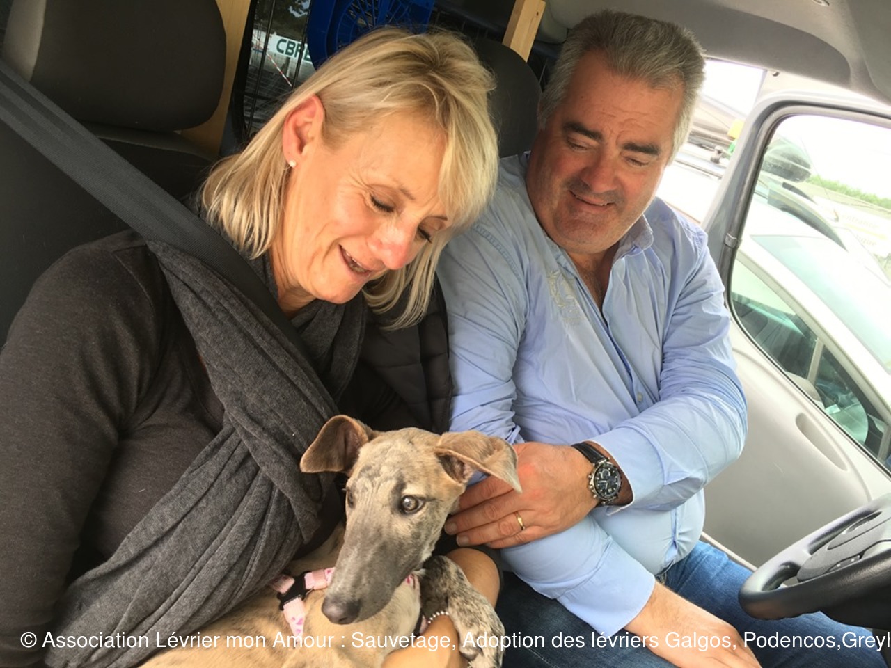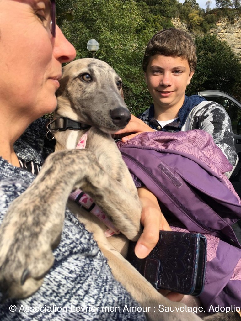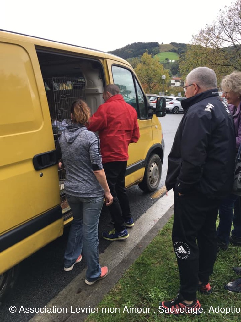 BB Nescafé, BB KitKat (Kréma), Nayma, Galleta adoptés regagnent leur famille et leur nouvelle maison, en route vers le bonheur ❤️❤️❤️ Boira et BB Vida partent en accueil chez Marika. Petit moment d’émotion, BB Vida a trouvé sa famille en Bretagne elle la rejoindra plus tard le temps de consolider le portail. Leno ce beau grand galgo part en accueil chez Martine et Pascal. Bonne route à tous.