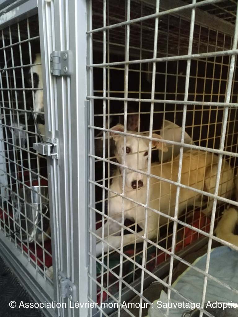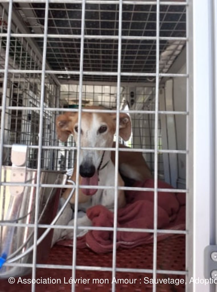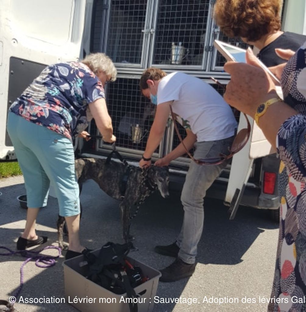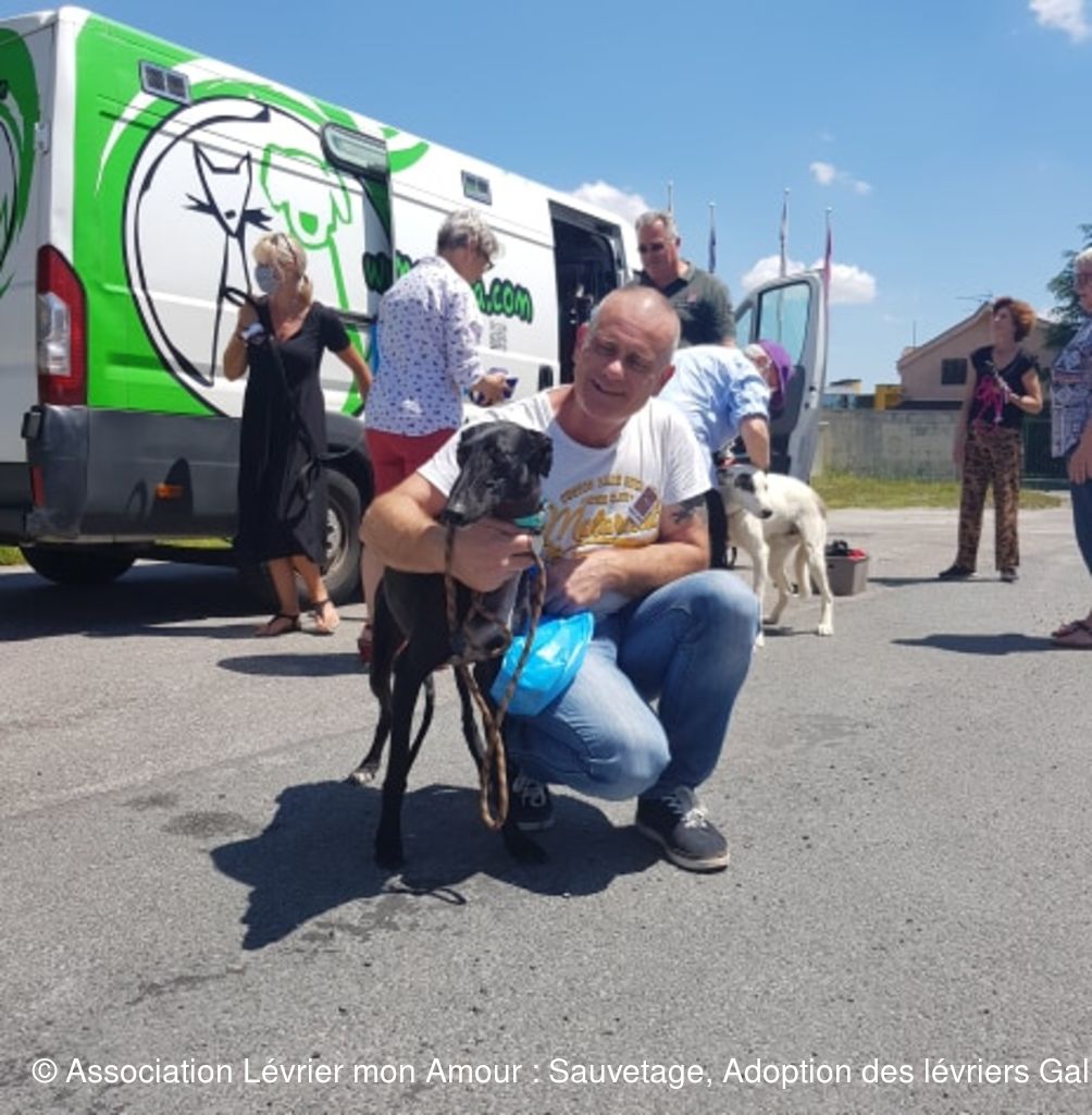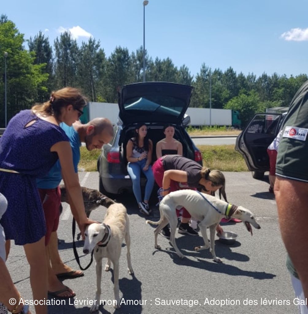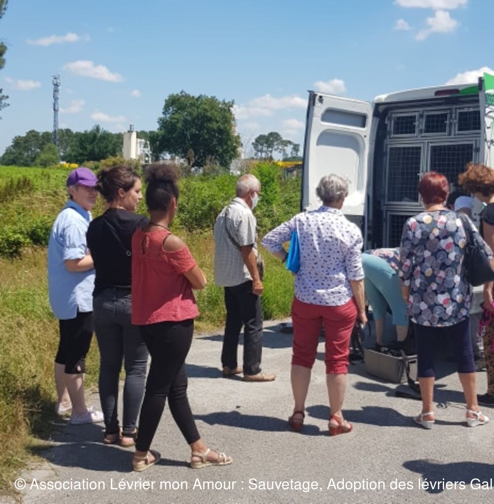 Et un par un, ils sont descendus, doucement la route a été longue –  ils sont tous sécurisés et équipés de la précieuse médaille Lévrier Mon AMOUR, certitude d’une vie meilleure mais vite il faut se dégourdir les pattes - avec crainte ils foulent pour la première le sol français.