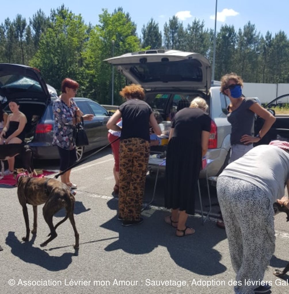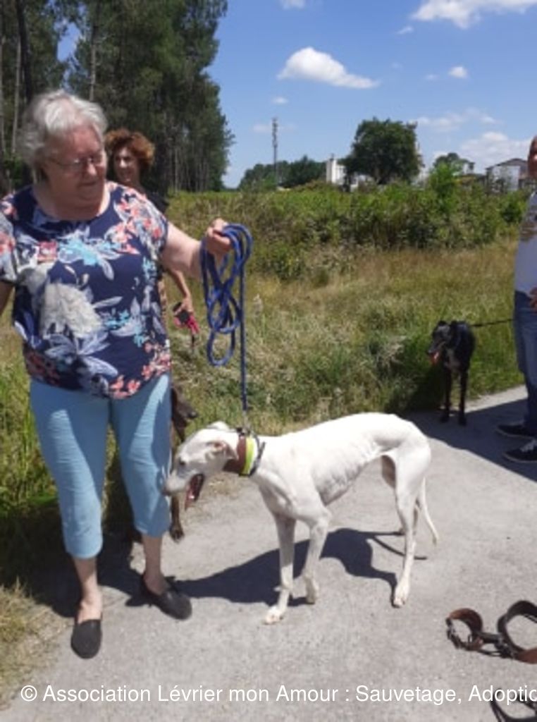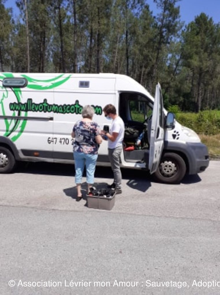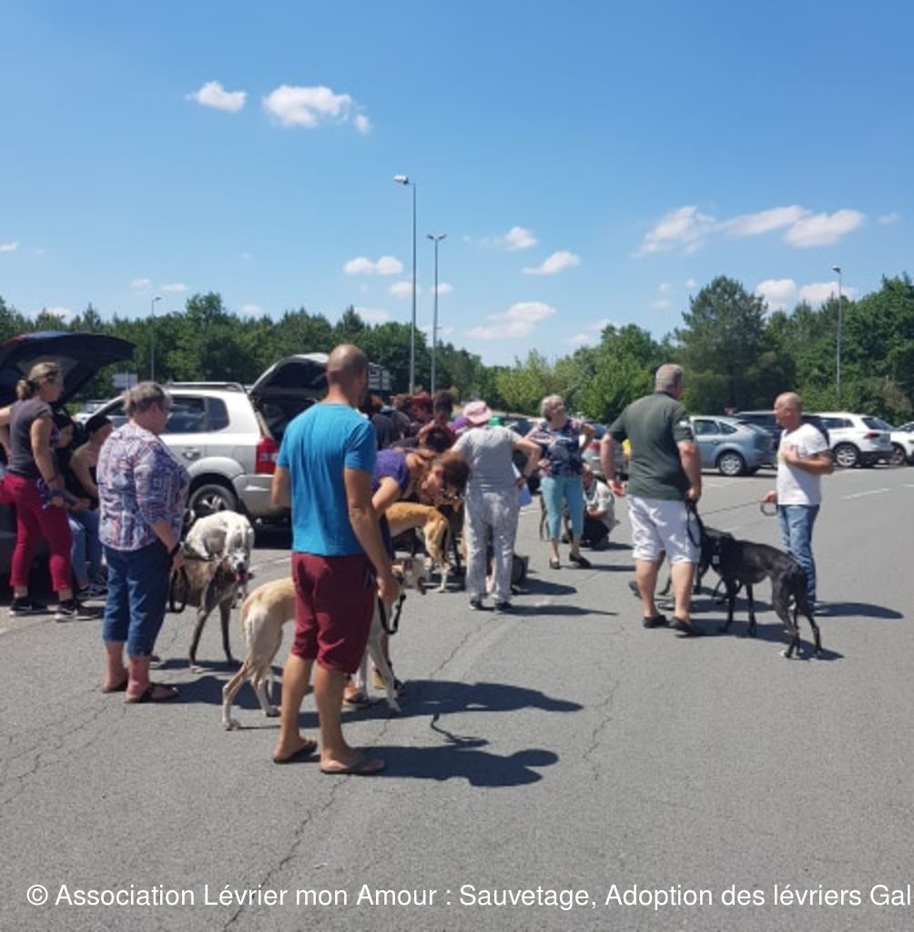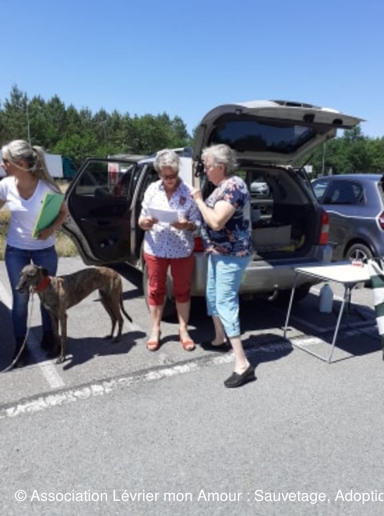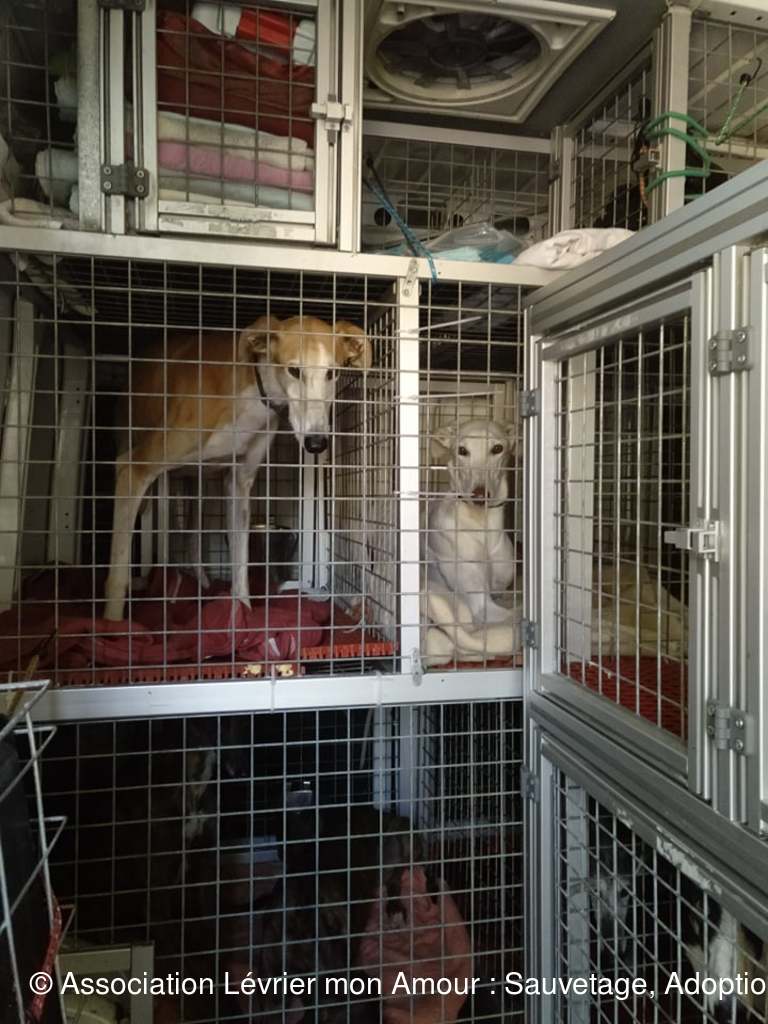 Et un par un, ils sont descendus, doucement la route a été longue –  ils sont tous sécurisés et équipés de la précieuse médaille Lévrier Mon AMOUR, certitude d’une vie meilleure mais vite il faut se dégourdir les pattes - avec crainte ils foulent pour la première le sol français.