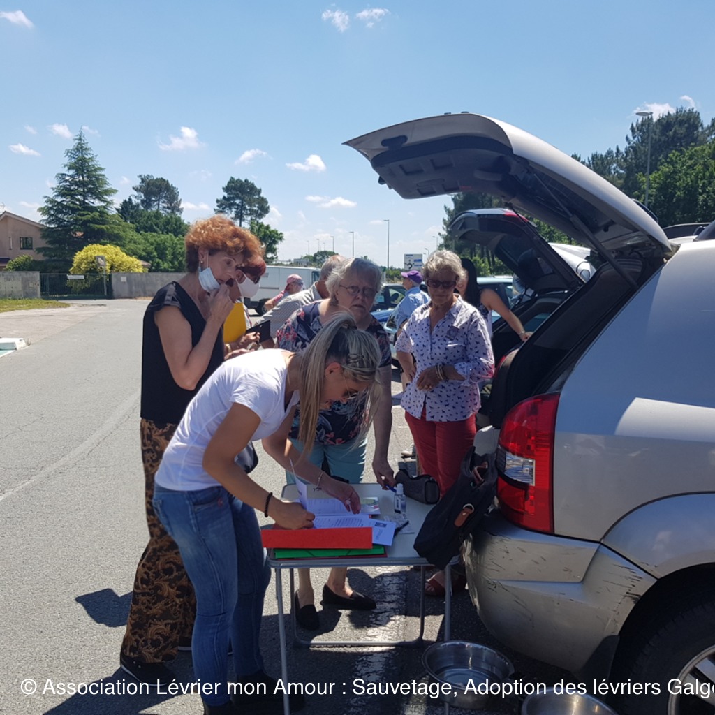 Le jour « J »  à 14H00  à MARCHEPRIME toute l’équipe LMA au grand complet est là :  Joss, Martine, Yolande, Raphaëlle, Philippe, Jean-Paul, Emmanuel et Murielle sans oublier Cat qui s’est démenée sans compter pour que ces loulous remontent au plus vite. Il y a aussi  les familles adoptantes et nos familles d’accueil.