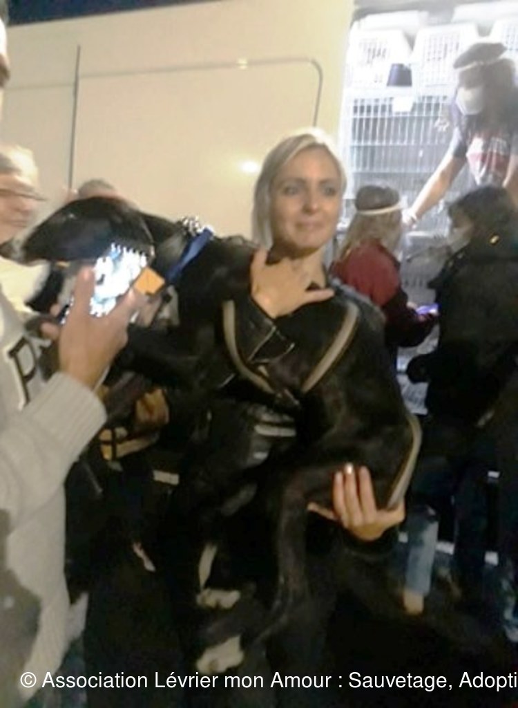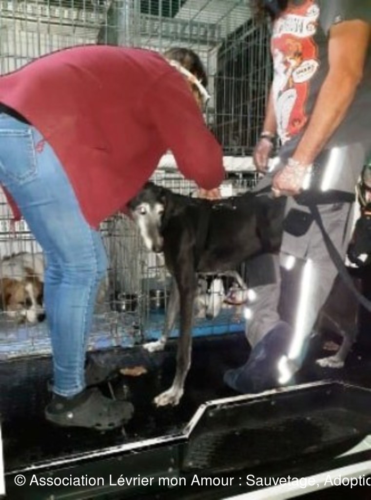Claude, petite galga noire, descend à son tour, cette pauvre galga a été retrouvée dans un état lamentable, c’est une miraculée, mais aucune rancune elle est très proche de l’humain, elle est prise en charge par Martine, en famille d’accueil. Estrella, la douce, rejoindra Nathalie en famille d’accueil, BB Négra, petite merveille noire et blanche descend à son tour, jolie comme un cœur, très affectueuse, elle est prise pour la nuit chez Raphaëlle et Philippe ; elle est adoptée par Victoria qui fera une longue route samedi matin pour venir la chercher.
