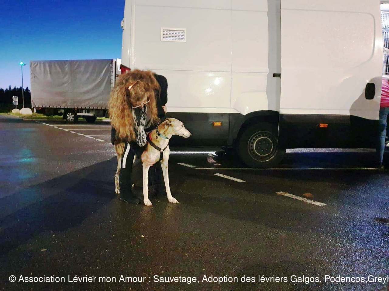 Un petit mot de remerciement tout particulièrement pour LAURA, responsable du transport, très professionnelle, elle veille sur la sécurité de chaque chien, aucun galgo ne sera descendu du camion sans être totalement sécurisé : harnais, collier, médaille, longe.