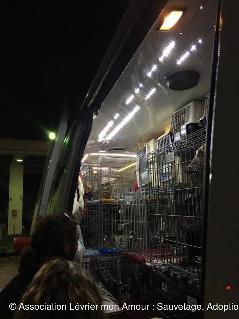 Enfin le camion est là, nos 3 rescapés descendent du camion. Archi et Maximo sont très très stressés car ils ne savent pas encore que le bonheur est à portée de leur papatte ! Blanco est bien dans sa tête, il est attendu par sa famille.