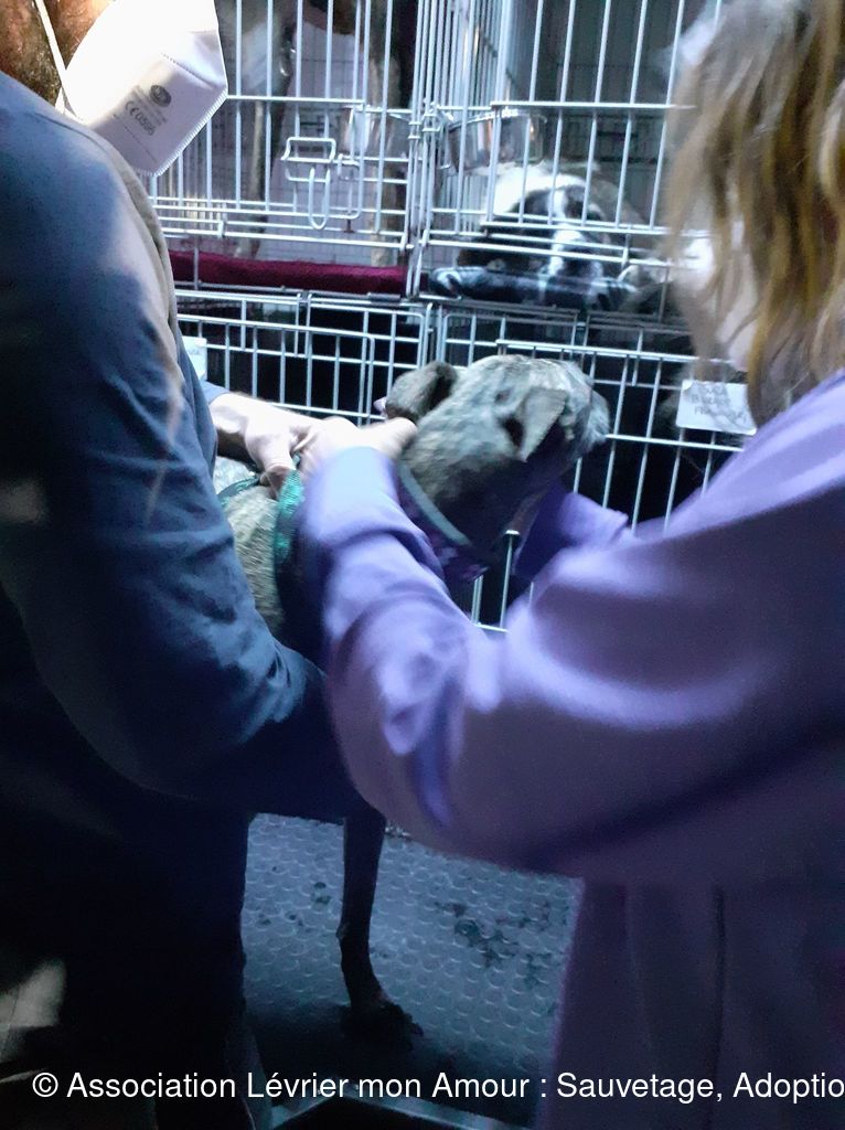 Espija a été récupérée avec 2 autres galgas lors d’une intervention de la Guardia Civile. Elle était détenue dans de très mauvaises conditions car elle souffrait de la gale et de grave malnutrition.