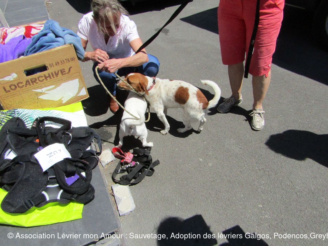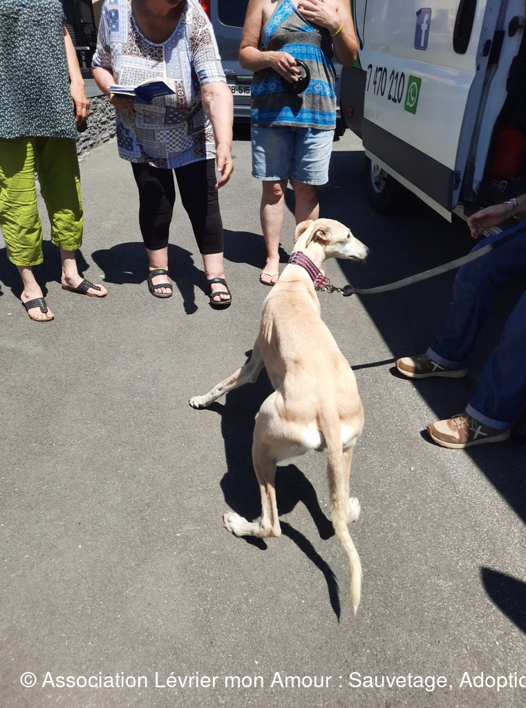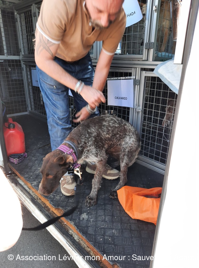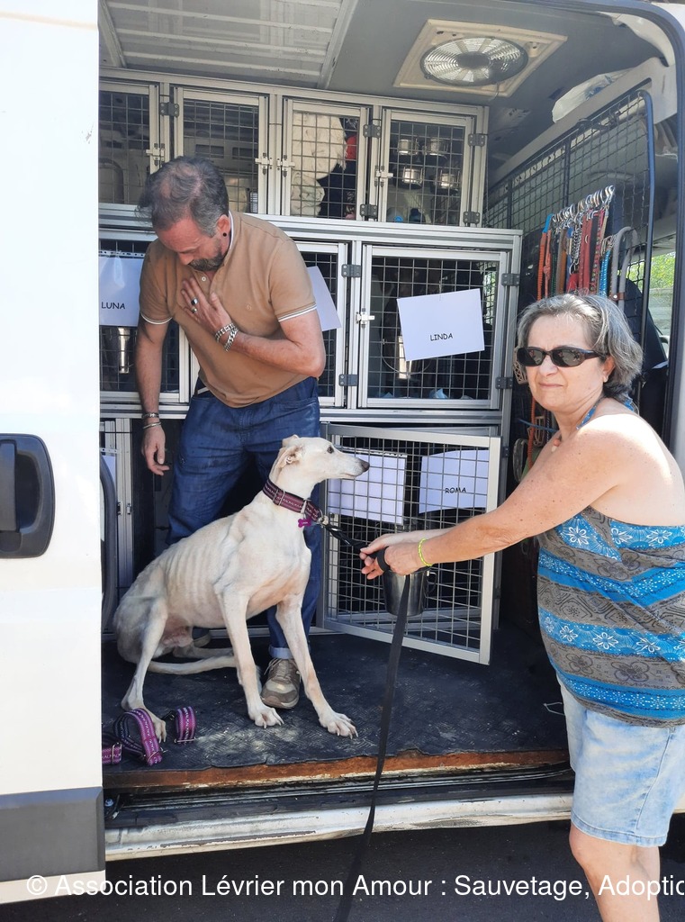 Nous prenons notre temps pour mettre à chaque loulou leur collier et leur harnais sécurisé ; les conversations autour de nos petits protégés vont bon train et pour certains « anciens » adoptants comme Michèle ( qui prend Calvario en accueil) ainsi que Marie-Francoise et Antoine (qui adoptent ensemble Sindy, Tango, Luna et Chico pour le grand bonheur de leur papy Odin) ce sont des supers et joyeuses retrouvailles. Sans oublier Jane et Geofroy pour l’adoption double de Blanco et Jaimito qui ont le bonheur de rester ensemble. Nous n'oublions pas petite crevette podenquita Hada, ni Roma et Luz qui sont très attendues dans leur famille. Merci Catherine notre Gerçoise pour l’adoption de Linda, et tous les adoptants de notre belle asso LMA.