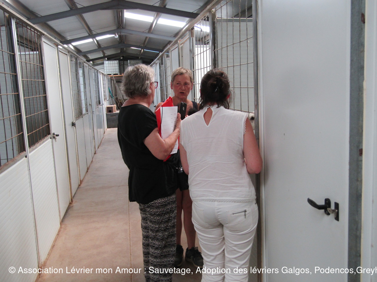 Nous faisons le tour des boxes avec Ana et Jorge. Il y a beaucoup de chiens donc beaucoup de bruit et d'aboiements, un certain nombre de loulous ont été sortis de la perera. Je pense qu’Ana n’en a jamais eu autant. Plus les 10 BB de Golondrina et de Paloma ainsi que les 2 petits de Kira. Et je ne parle pas de la dizaine de chiots croisés de moins d’un an !!!
