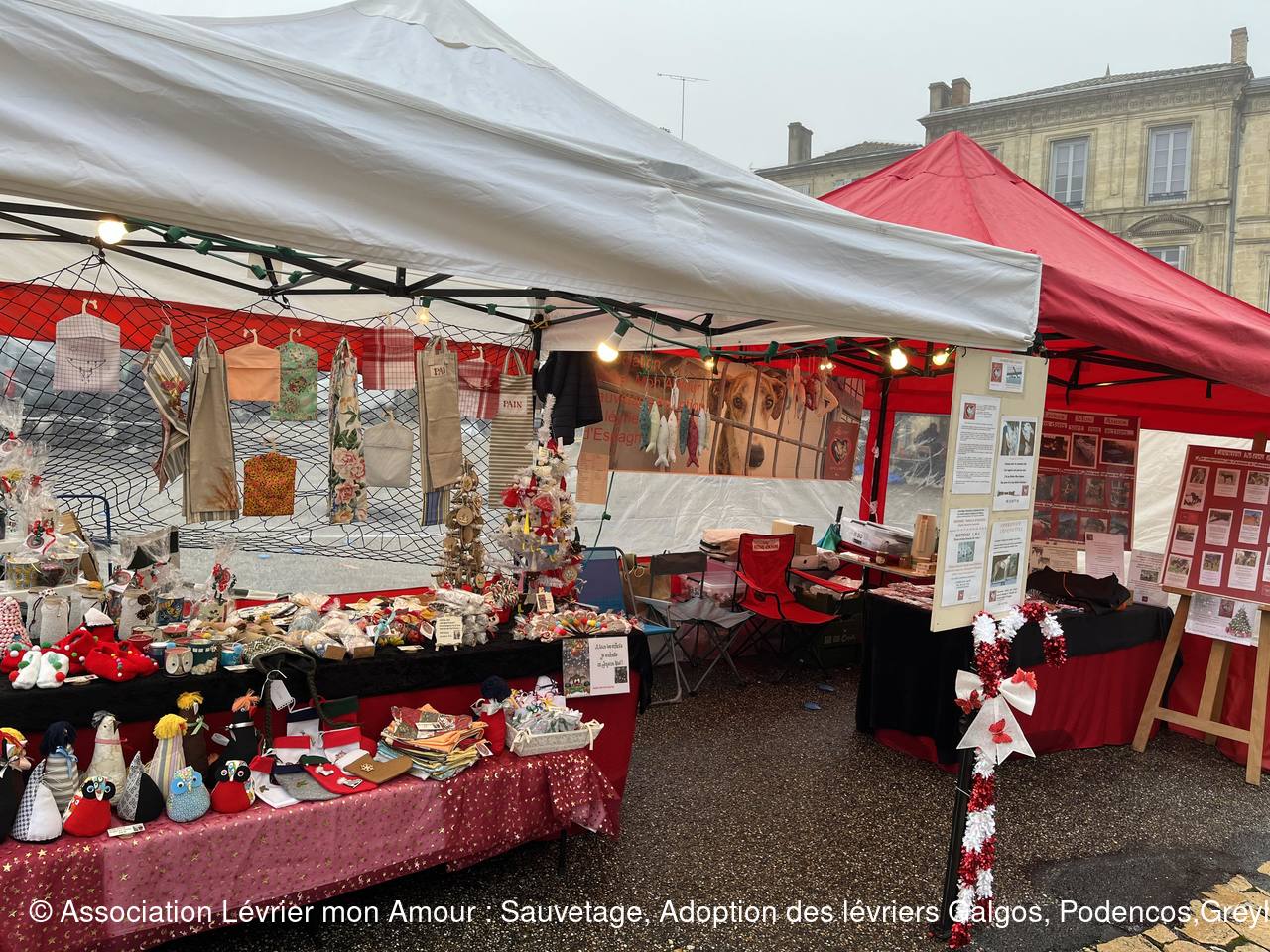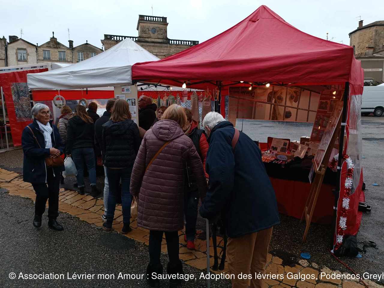 Ouverture du marché, avec l’arrivée de Delphine et Catherine adoptante de Uta (PLI ) venues du Bassin d’Arcachon et de Coimères pour nous aider à tenir le stand et de Maité et sa Diana (notre grande spécialiste de création des étiquettes affichées sur nos articles en vente, beaucoup de temps et d’investissement aussi pour les préparer).