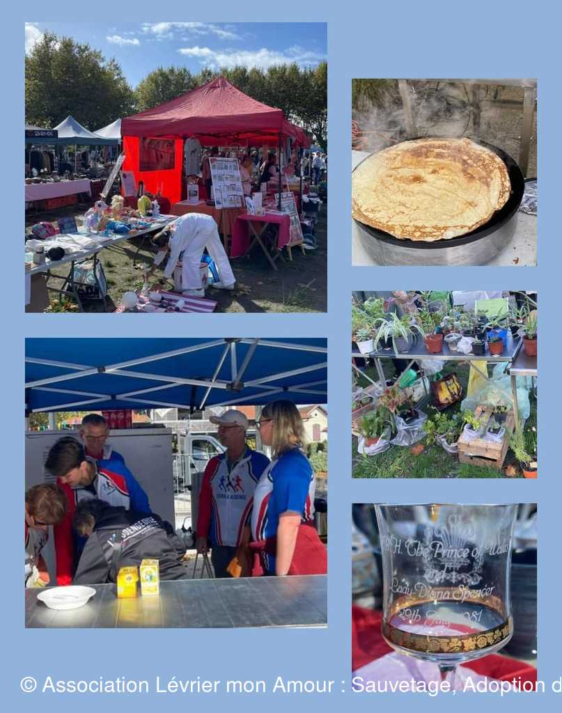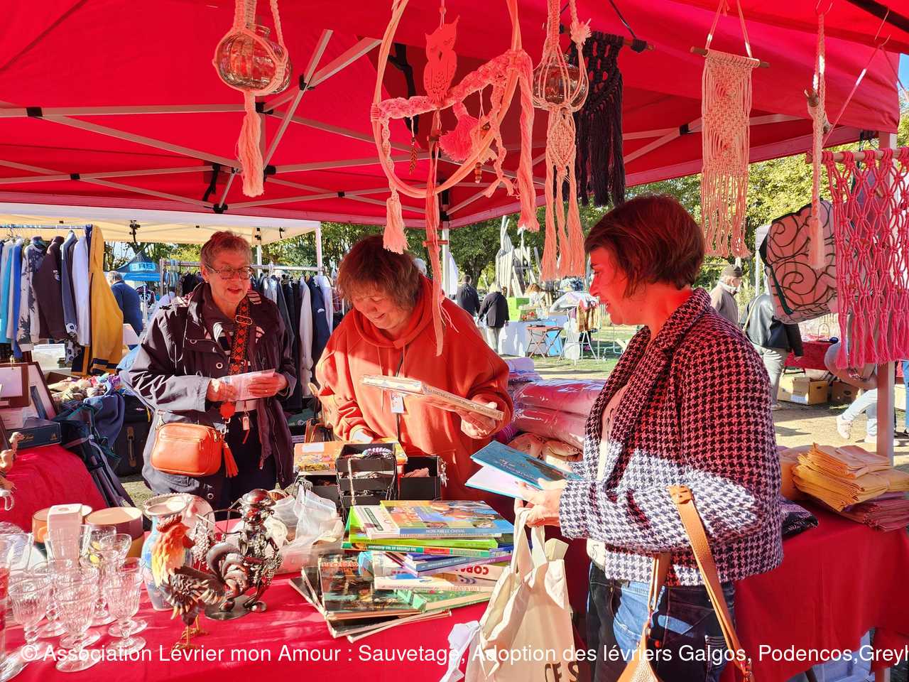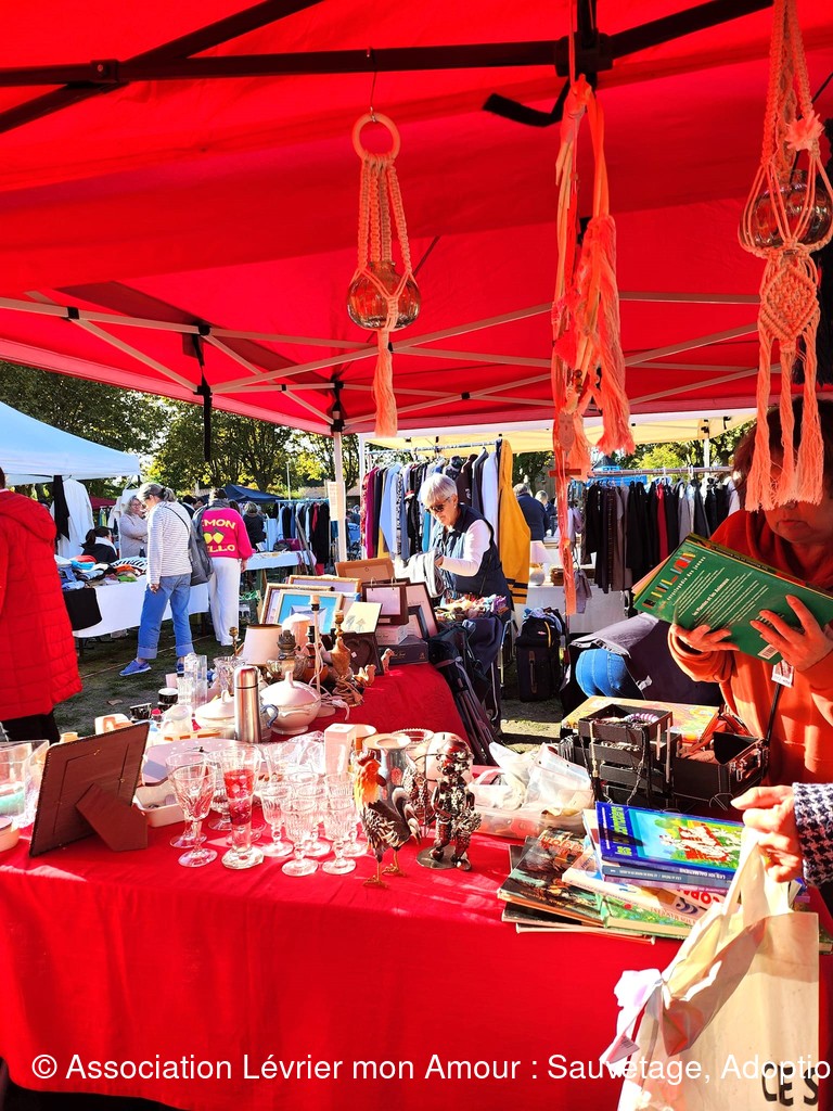Les visiteurs ont pu découvrir de nombreuses trouvailles tout en apprenant davantage sur la situation des lévriers en Espagne grâce à nos explications. Un grand merci au musicien de l'association "Courir à Audenge" qui a animé l'événement avec quelques notes d'accordéon ! ![]()
