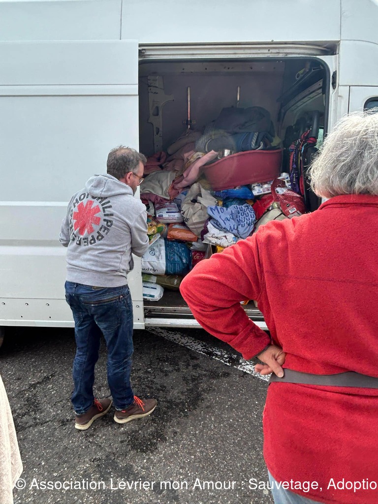 Pour le retour nous donnons 800 kgs de nourriture pour nos deux refuges partenaires de Salamanca, ainsi que des couvertures, de la pharmacie et divers matériel.